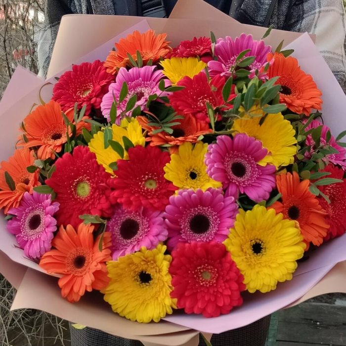 Букет из 25 разноцветных гербер
