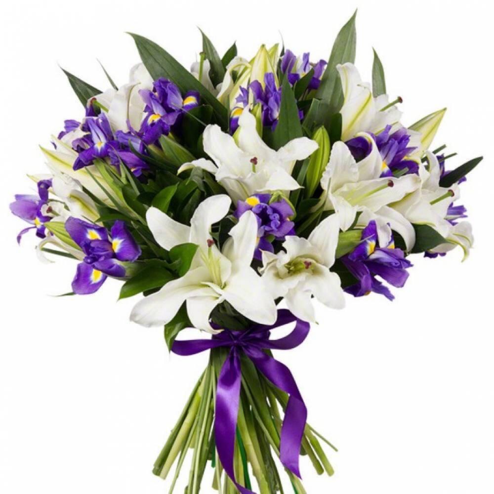 Букет с белыми лилиями и ирисами