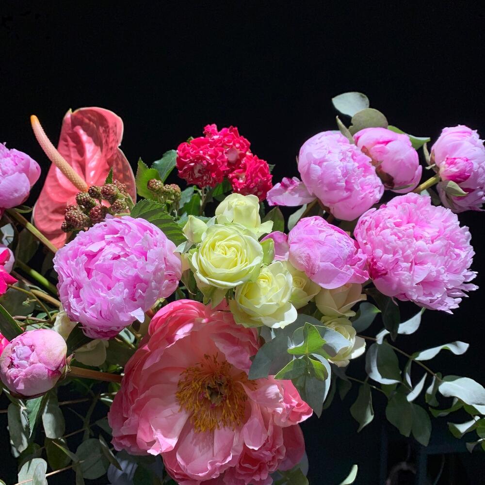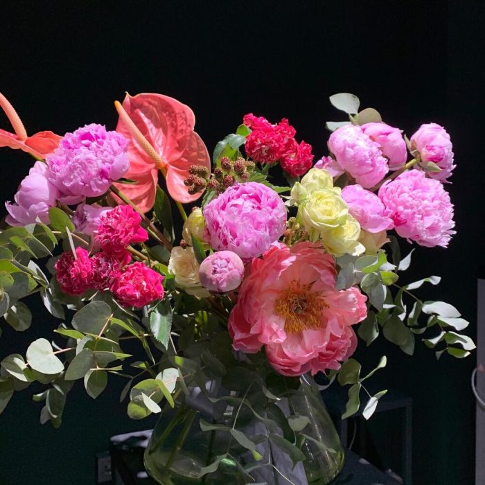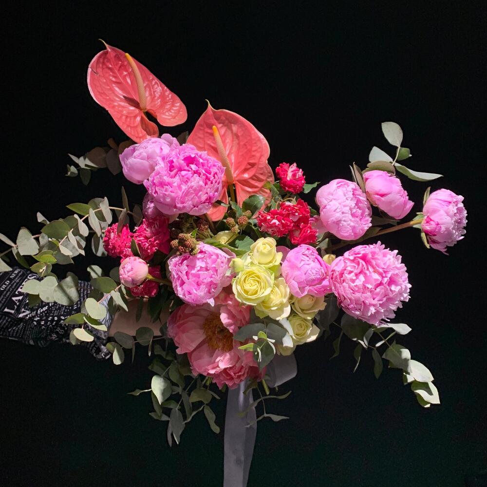 Гвоздики, Кустовые розы, Лизиантусы, Пионовидные розы, Розы