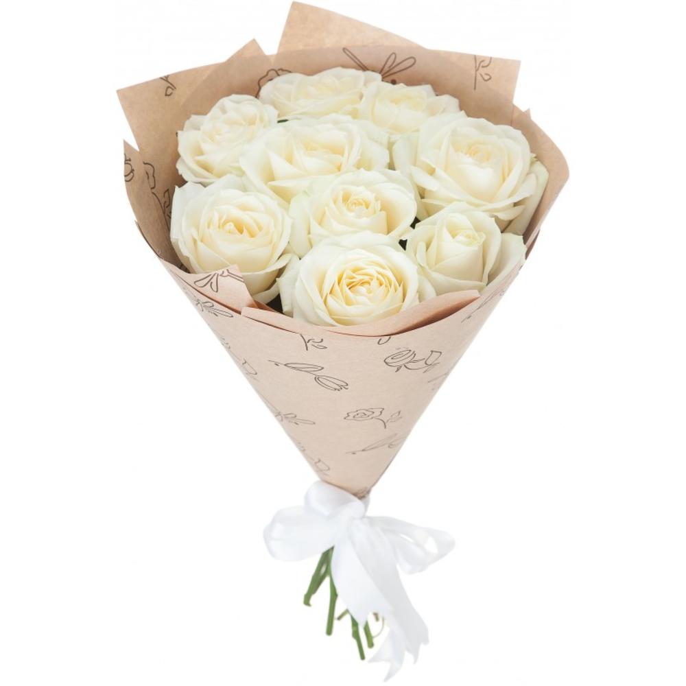 Роза белая 60 см – 11 шт.Крафт упаковка – 1 шт.