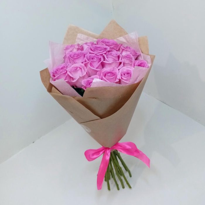 Букет из 15 роз розовых в крафте