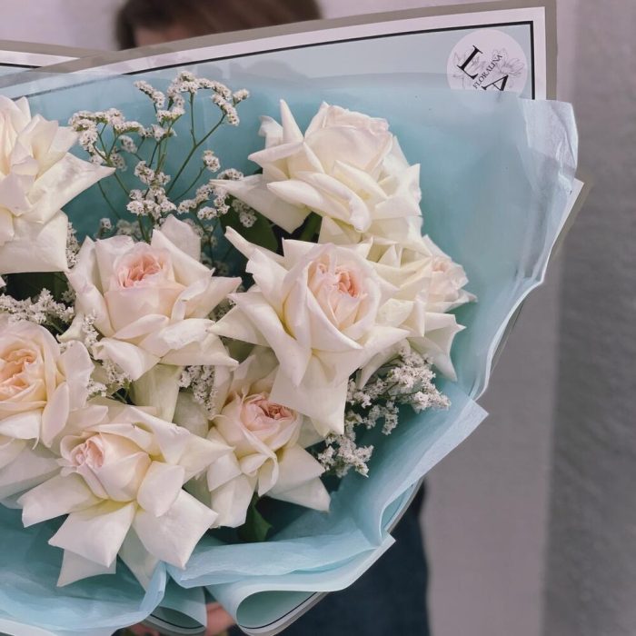 Лимониум – 4 шт.Тишью – 2 шт.Фисташка – 2 шт.Упаковка дизайнерская – 2 шт.роза охара пионовидная – 9 шт.