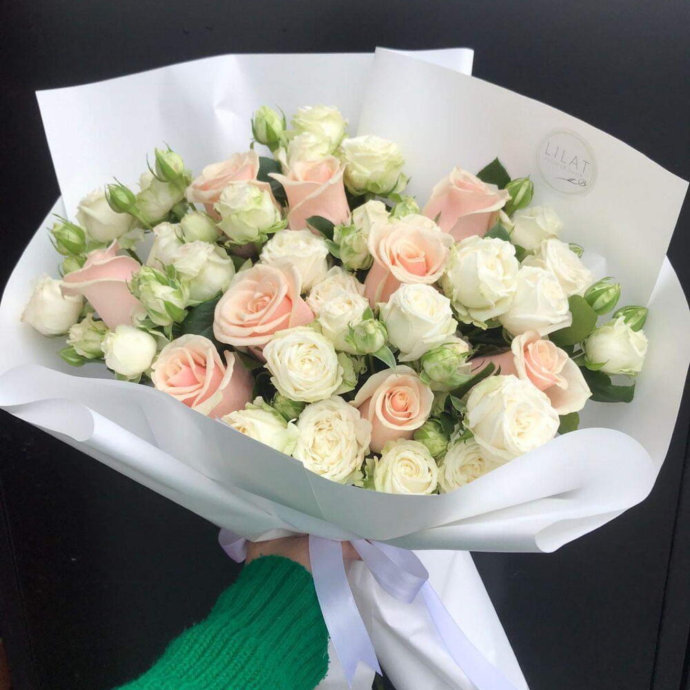 Гвоздики, Кустовые розы, Пионовидные розы, Розы